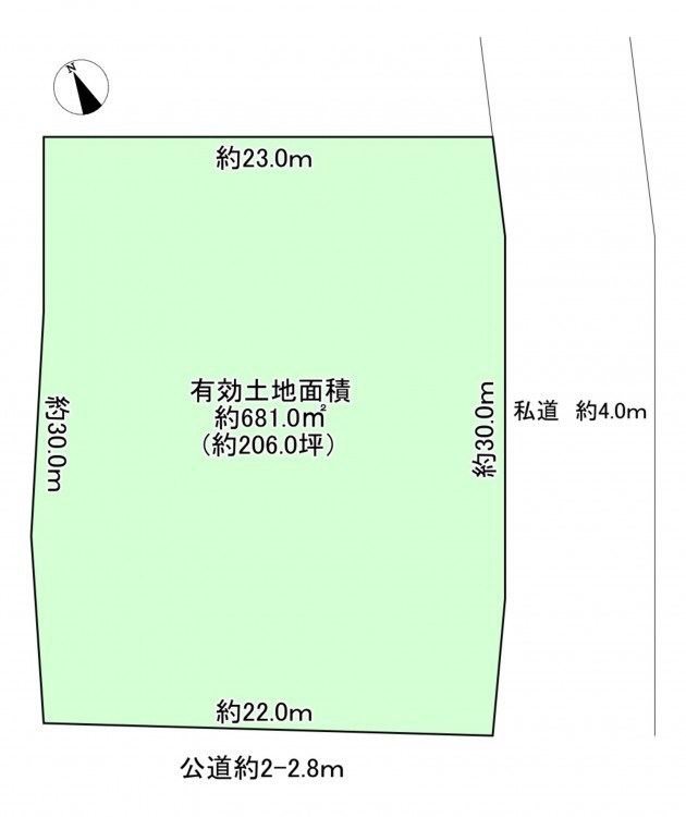 東側 私道4m 間口約30m