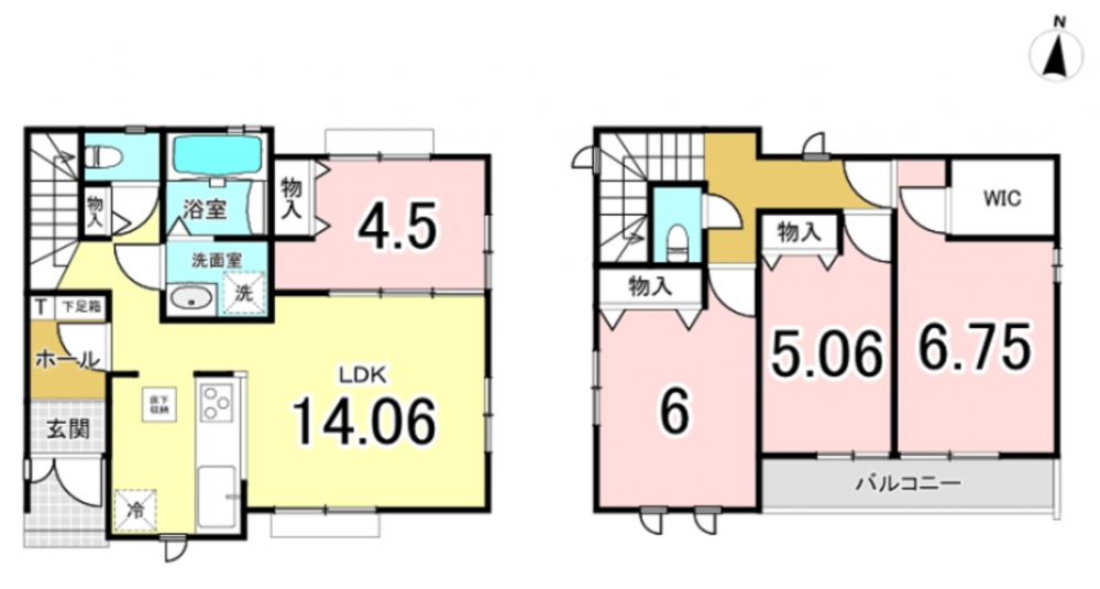 - システムキッチン、浴室乾燥機、ウォークインクローゼット、モニタ付インターホン、トイレ2箇所
